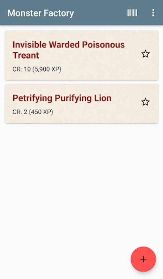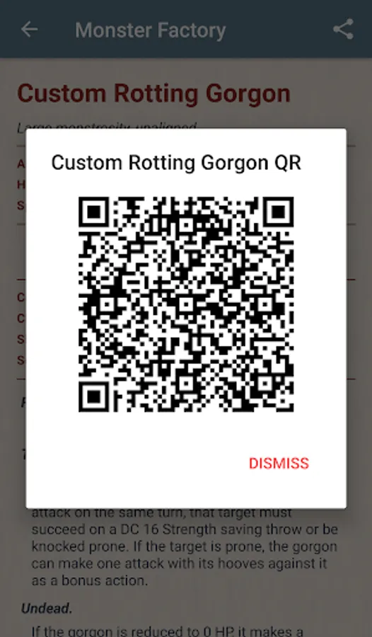 With the inbuilt share feature, you can load another person's generated monster sheet, or share one of your own via QR code. Star a monster to ensure no accidental deletion
