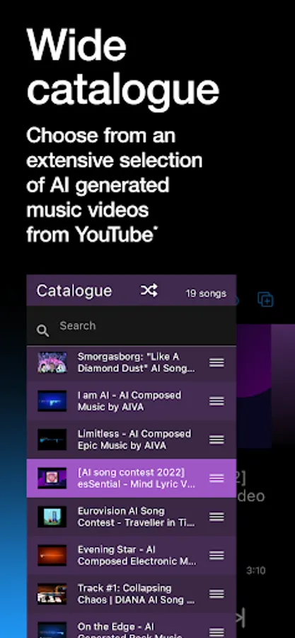 Choose from an extensive selection of Artificial Intelligence (AI) generated music from YouTube*