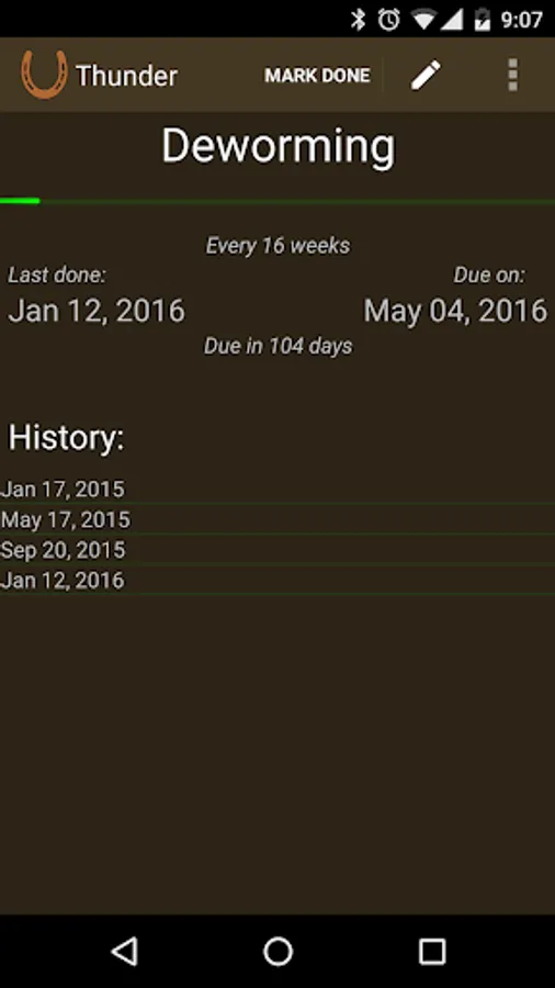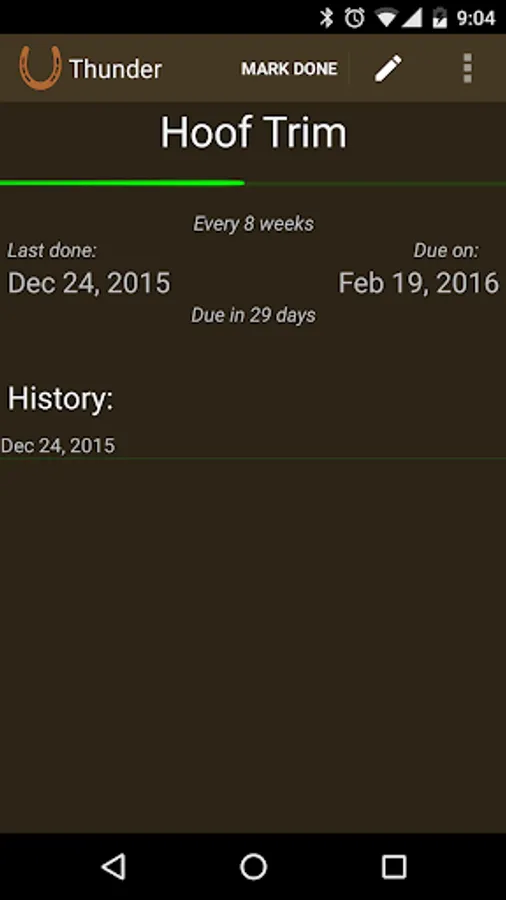 It helps you record when horse care tasks were last completed and are due next based on a schedule you define, making it easier to plan ahead, save money, and keep your herd happy and healthy.
