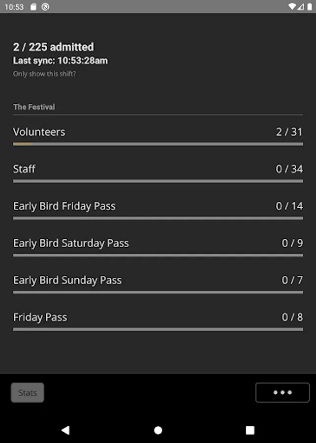 • Stay in-the-know with realtime stats showing how many of your attendees have arrived, great for managing capacity and organizing box office volunteer shifts
