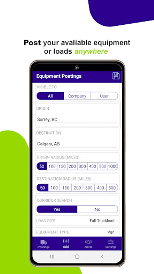 Instantly match with loads by city/state, equipment type, and select your preferred load