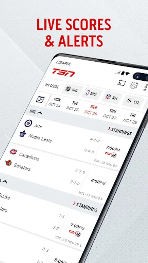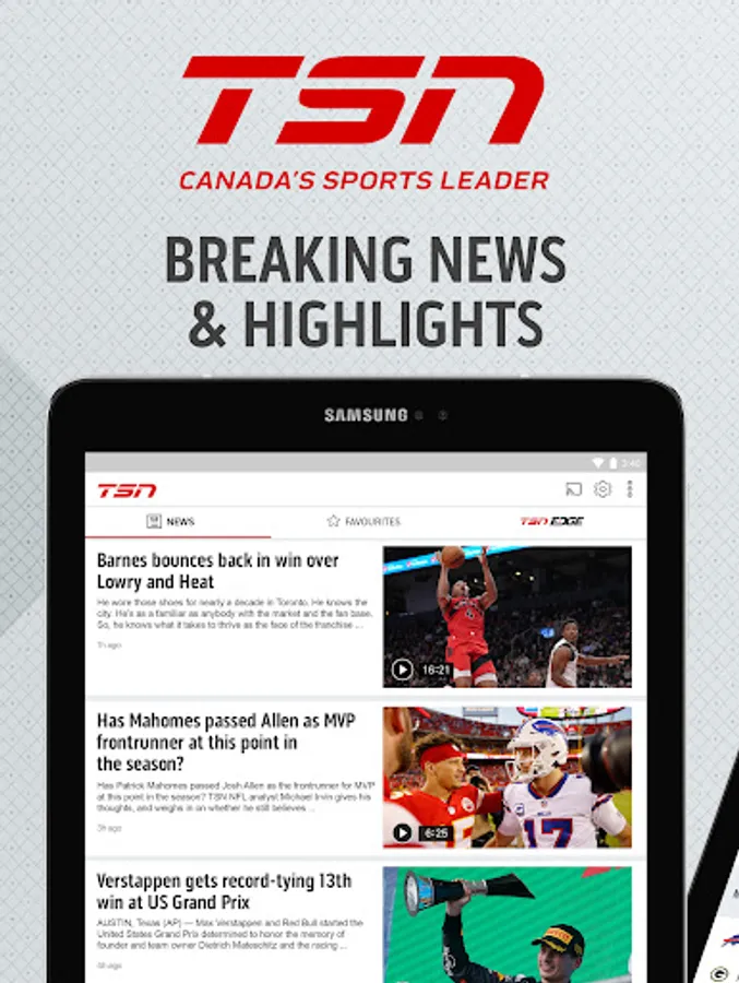 From the World Juniors to the Grey Cup, the FIFA World Cup to UEFA EURO, plus regional NHL broadcasts, Raptors and NBA to golf Majors and tennis Grand Slams, NFL, F1, NASCAR, UFC, NCAA and more. Download the TSN App and never miss a minute of Canada's Sports Leader's world-class lineup of live sports and 60+ championship events. Also, catch nightly editions of SportsCentre – Canada's most comprehensive sports news program – and access your favourite TSN shows alongside a slate of popular ESPN programming and much more!