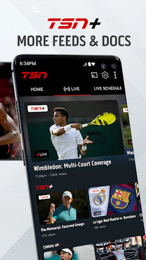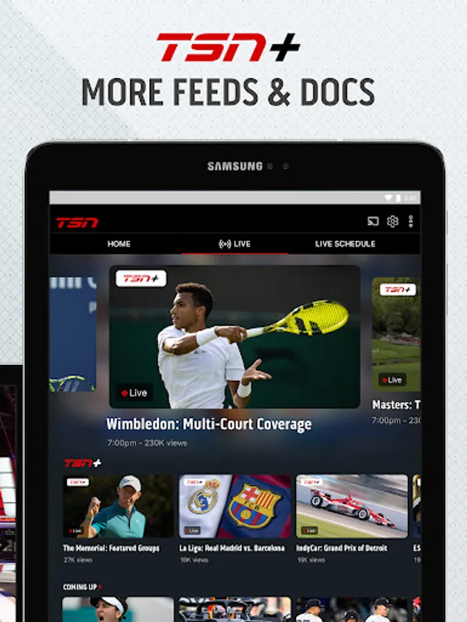 The TSN App gives Canadian sports fans the ability to live stream the network's five national feeds – TSN1, TSN2, TSN3, TSN4, and TSN5 – on multiple platforms, anytime, anywhere.
