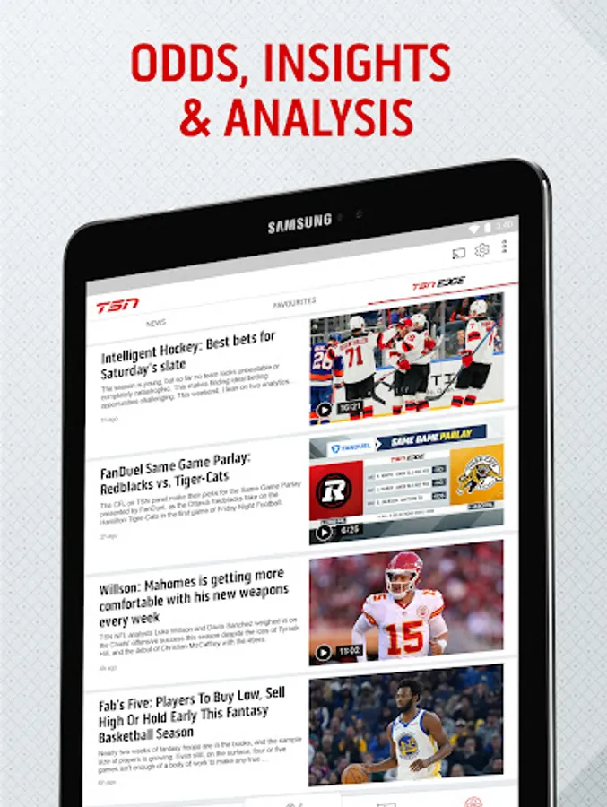 The TSN App features breaking news headlines, up-to-the minute scores and stats, analysis and features from TSN's all-star roster of Insiders and experts. Along with wall-to-wall coverage of the NHL, NBA, CFL, NFL, MLS, MLB, ATP, PGA, F1, NASCAR, UFC, NCAA and every other major sports league, highlights of the TSN App include: