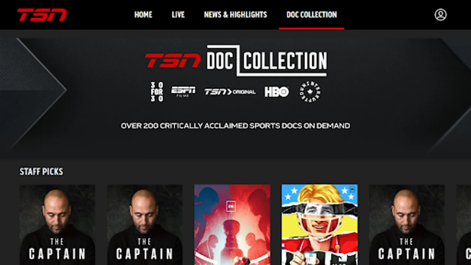 • TSN ORIGNIALS: Access to TSN's award-winning original features and documentaries.