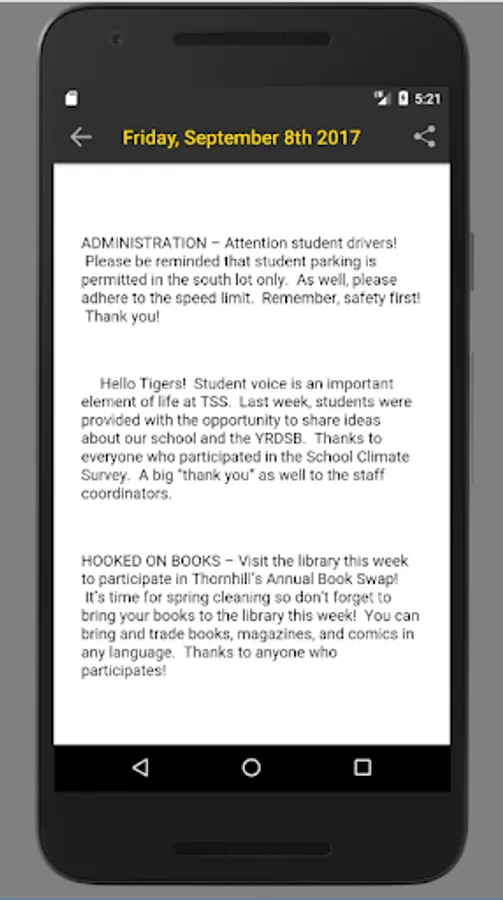 With this app, students will be able to access the school's announcements from anywhere, keeping the student body informed. Additionally, parents and teachers will also have access to these same announcements, keeping them up-to-date with the latest at TSS.