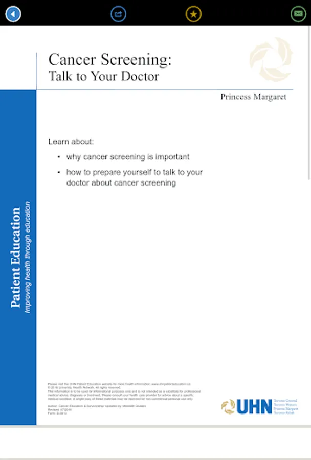 The Brochure Library app lets you find and read cancer health information brochures developed by health care professionals at the Princess Margaret.