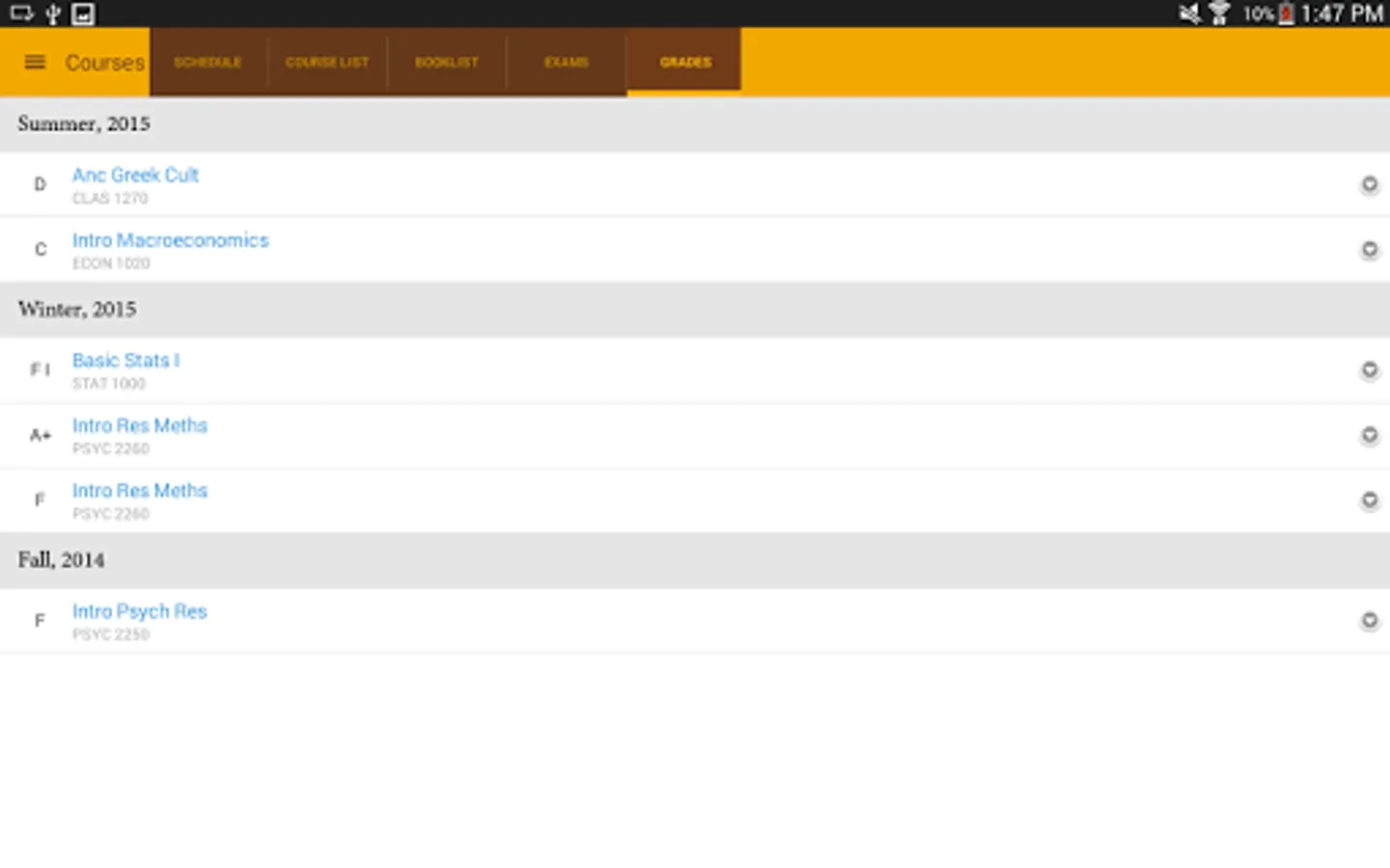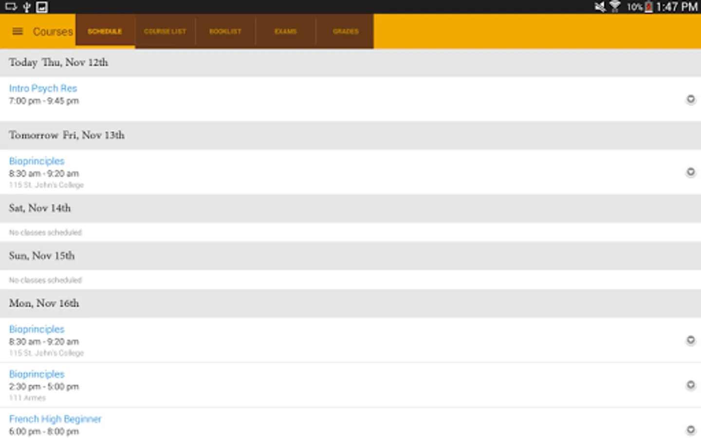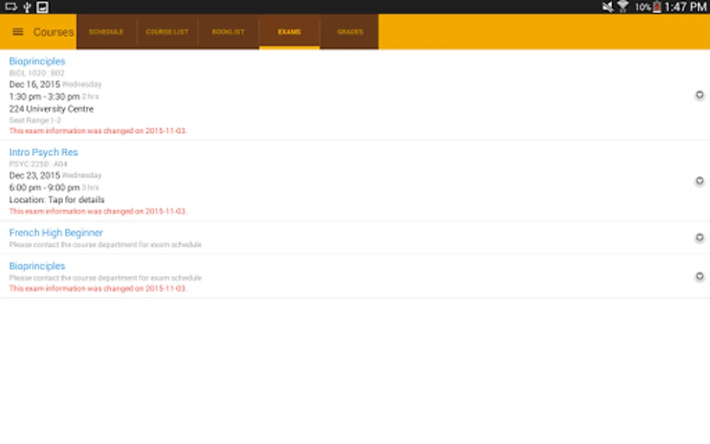 The Official University of Manitoba app gives students direct access to grades, class schedules, Desire2Learn (our learning management system) and booklists, plus the ability to purchase these books from their device.