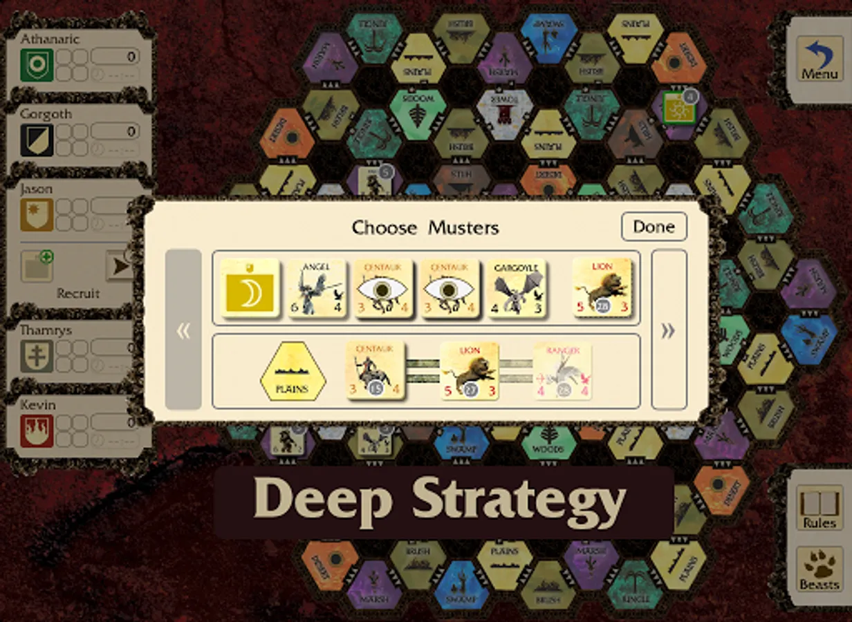 Players take the role of a Titan, moving through the constantly changing terrain of the Land with Legions of Ogres, Gargoyles and other monsters of myth and legend. Players move their Legions along specific pathways recruiting creatures to their side and using those Legions to battle their opponents. Battles then take place on separate terrain maps where only the strongest survive!
