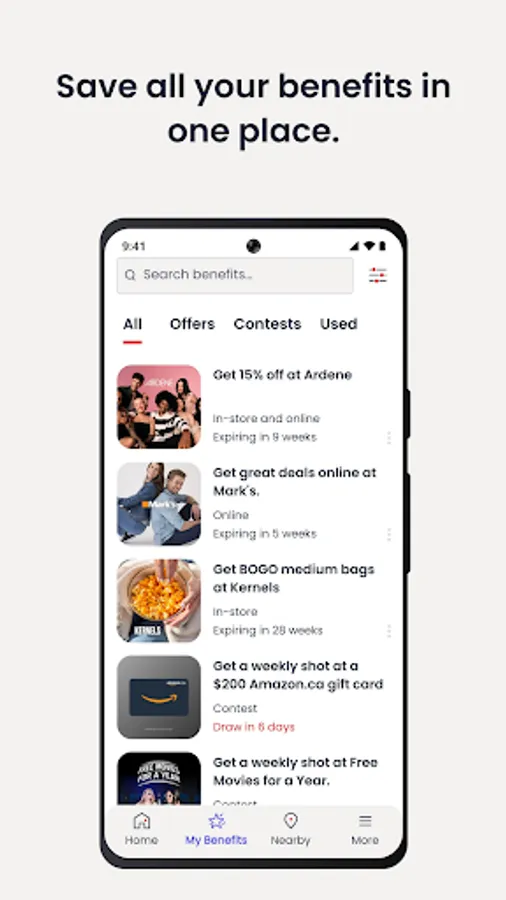 • Personalized based on categories you like and benefits you redeem so you’ll see more benefits you love.