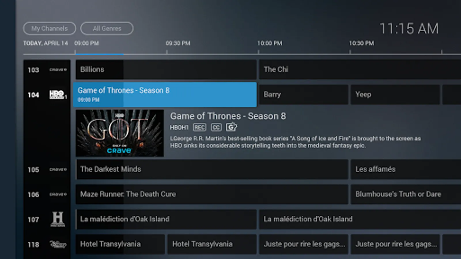 Watch all the major networks; CBC, Global, CTV, CityTV, ABC, CBS, NBC, FOX, PBS, plus all favourite specialty channels, including: A&E, Bravo, Crave, CNN, Food Network, HBO, HGTV, Sportsnet, TSN, W, Slice, and many more. Enjoy top-rated series, exciting sports, breaking news and so much more. Over 400 channels to choose from.