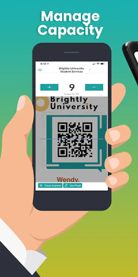 The App provides ability to use QR code scanning to admit customers in Event mode, PushNotifications regarding waiting customers and more.