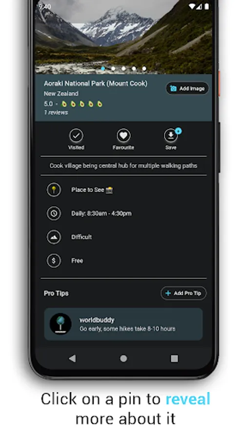 Add your created markers to the WorldBuddy server to have it land on the main map, add your own protip about the location to help guide other travelers.
