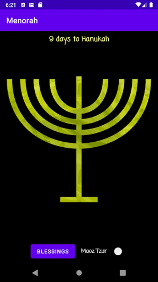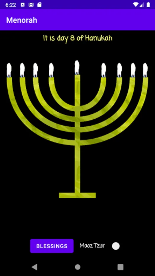 Celebrate Hanukah with a Menorah that shows you how many days till Hanukah and shows what day of Hanukah it is. It also has the prayers over the candles and an added bonus, it plays Maoz Tzur!