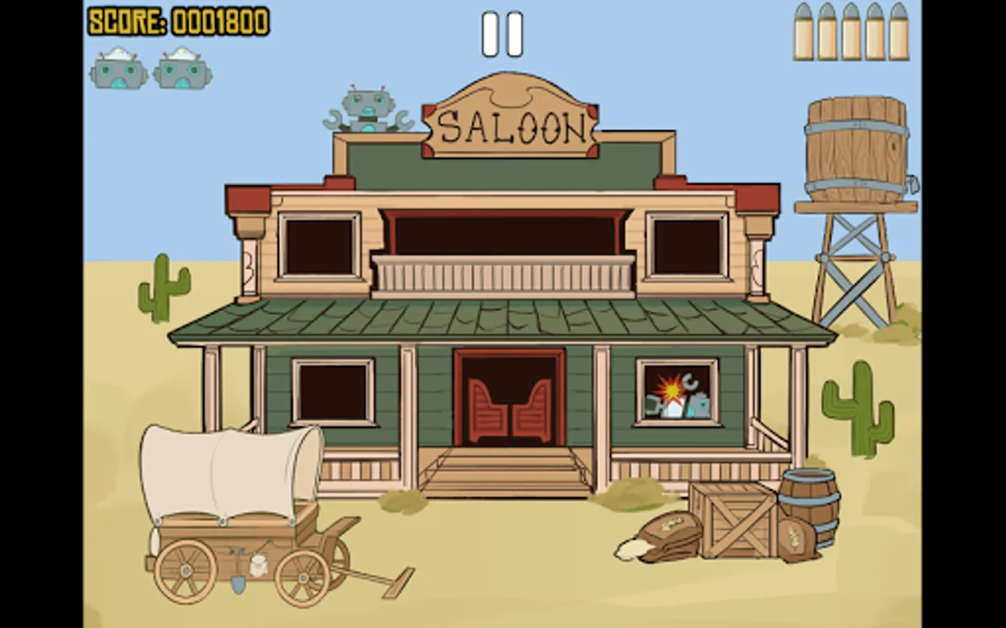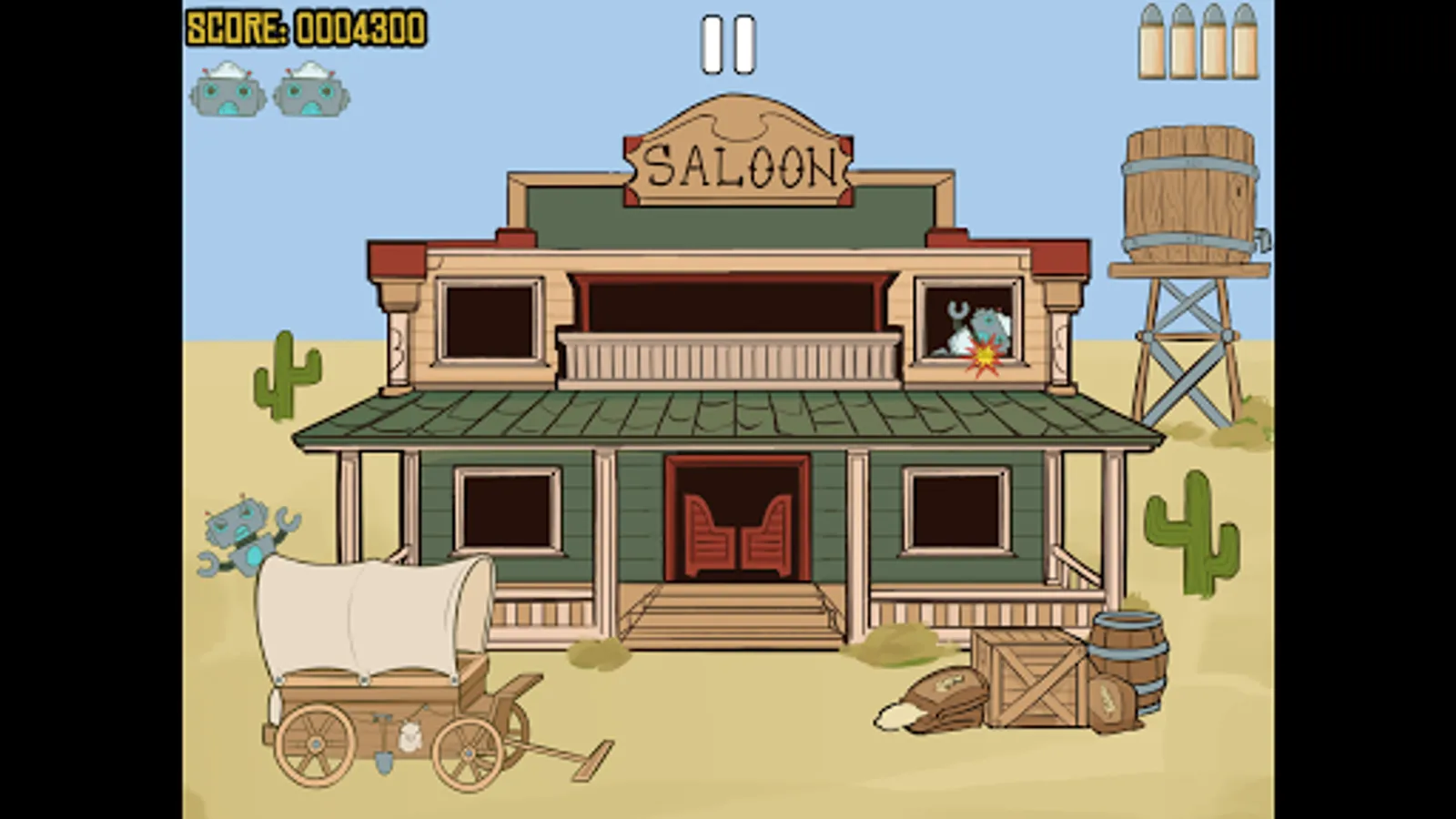 In a world that has the technology to build robots but not modern day infrastructure, an army of rebellious robot maids have forgotten their primary objective of helping mankind and are now interested in the extermination of it! The fate of the world is up to you and your lucky six-shooter.