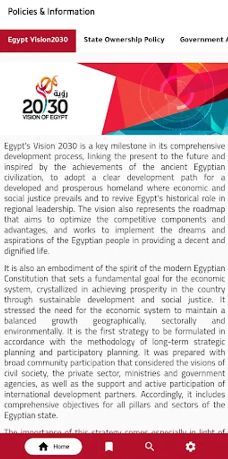 The Egyptian Cabinet App displays the activities of the Egyptian government and the important decisions issued by the Council of Ministers