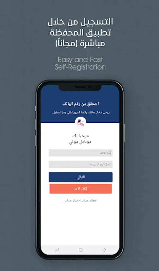 Self-Registration: download Mobile Money Wallet App, select ‘Create an account’ option on the home screen and follow the on-screen instructions.