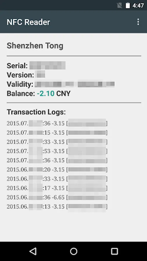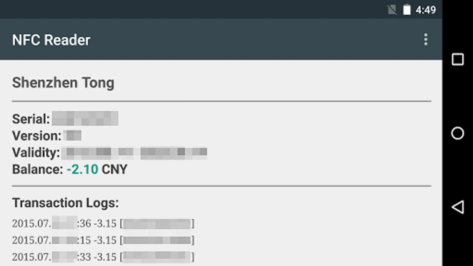 So far we've confirmed the following can be read: Shenzhen Tong (newer version) of Shenzhen, Shanghai Card, Octopus Card of Hongkong, Beijing Municipal Card (newer version), Changan Card of Shaanxi,Xi'an, Wuhan City Smart Card, Quick Pass (China, e-cash), T-Union (China, e-purse & e-cash), City Union (China).