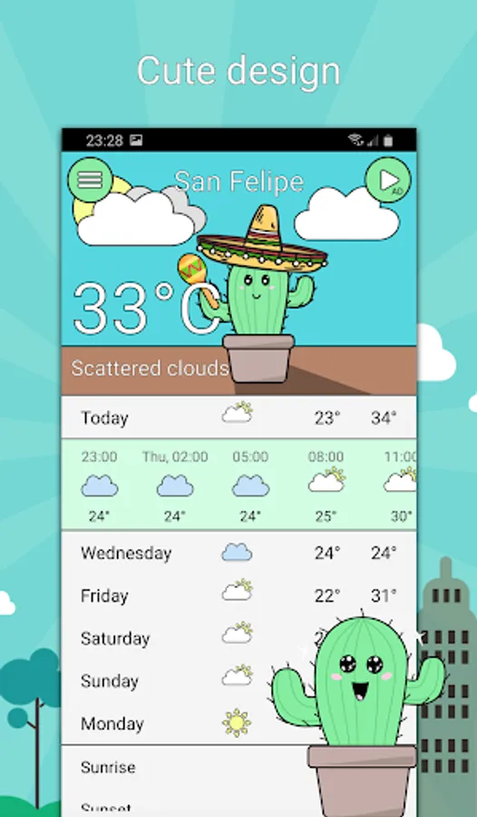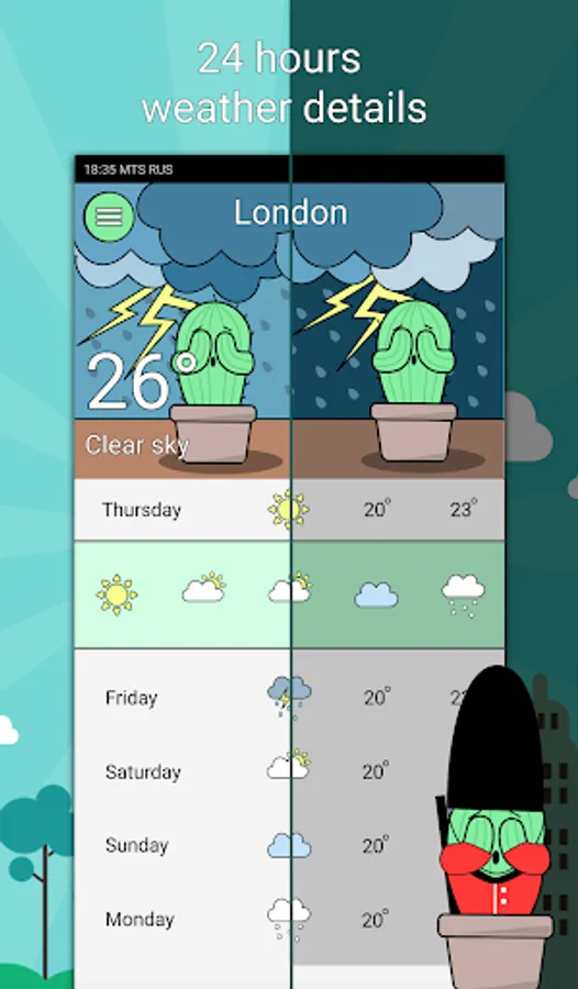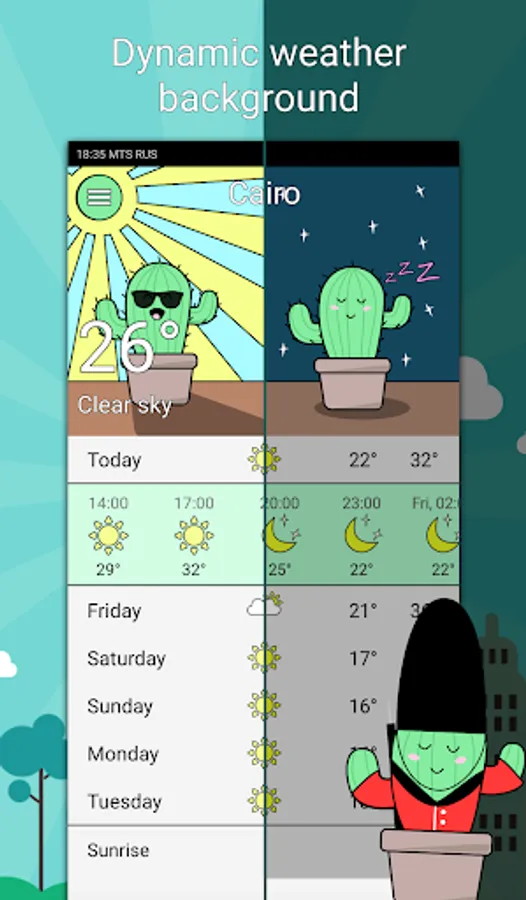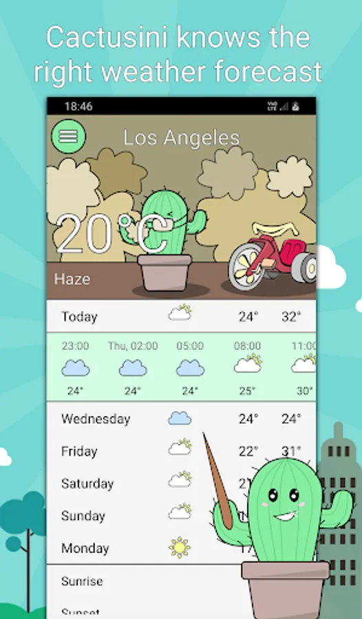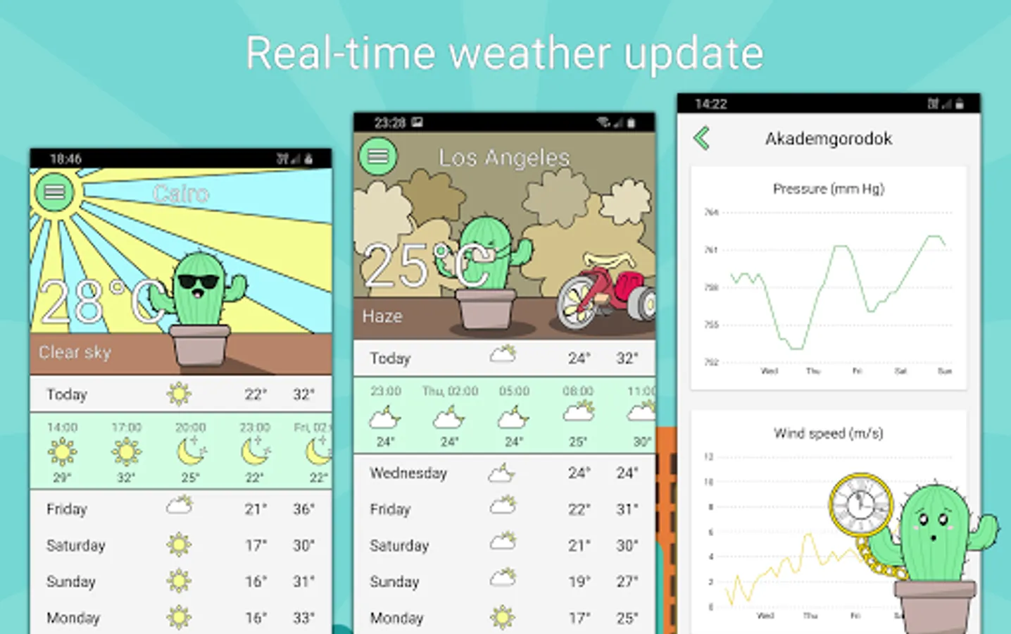 We think that Cactusini - is the cutest of all free weather apps. And it is absolutely fast working and supports all devices. You can install it for you children or parents, or for you on smartphone or tablet.