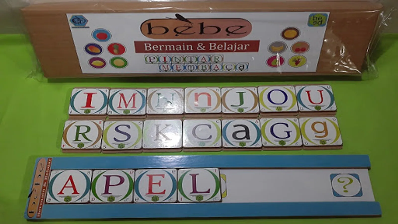 play and study or in short bebe is a reading learning toy made of wood.