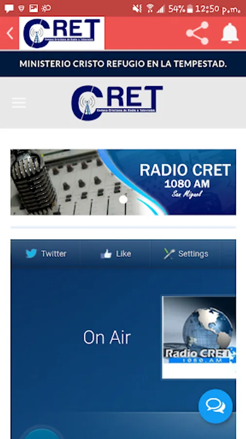 The Christian Chain of Radio and Television CRET transmits 24 hours the Gospel of Our Lord Jesus Christ, from the Republic of El Salvador in Central America. These media belong to the Christ Evangelical Ministry Refuge in the Tempest, IMECRET, directed by the pastor José Vidal Alvarado Moreno. We hope you are blessed with the programming of these media, God bless you.