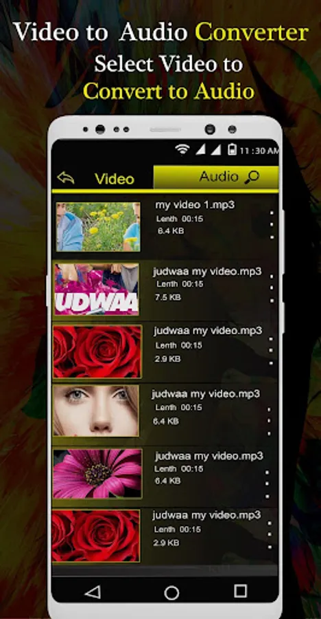 With Video To Audio Converter you can easily open the video you want to convert from the file manager and Click on Convert To MP3 Button to convert that video into audio with high quality sound.