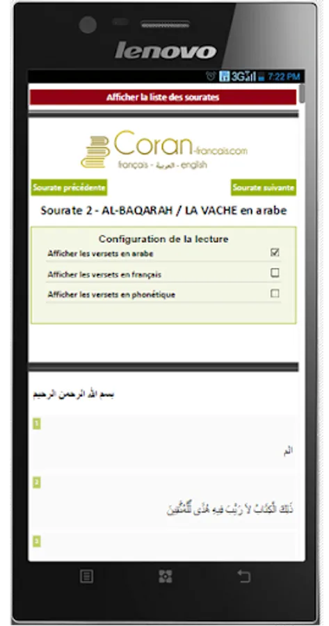 The Koran in phonetics is not only the way of reading to non-Arabic speakers, it is also the precious help to learn the suras in Arabic in order to know some bits of the Koran to recite in order to pray.