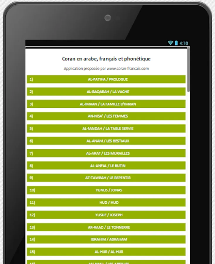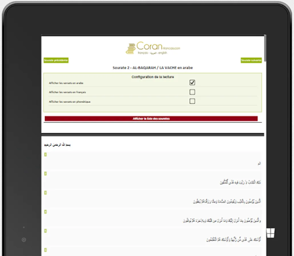 Downloading the Koran in French or Arabic for offline access on your computer or on your phone as well as distributing the Koran by Juz and by Hizbs to facilitate the organization of your reading are also features that we offer.