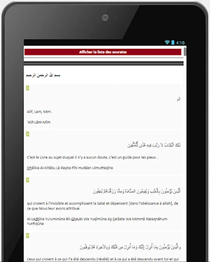 We have the honor to dedicate our work to putting the Holy Quran online in French with the opportunity to read, listen to it or download it in PDF or MP3 version in the language where it was revealed, l Arabic, as well as English and phonetics (accompanied by a reciter).
