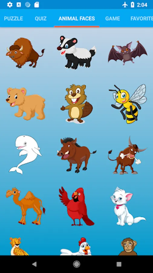 To Add favorites, please click Heart-shaped button on the top left corner of the Animal pictures. Animals will be marked and the color of the Heart-shaped button will turn into red. Favorite animals will appear in favorites page.