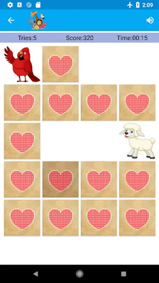 The aim of the matching game is to find the same animals as soon as possible. The same matching animal pairs become invisible. Memory game will be completed when all animal pairs are found. At the end of the game, score, duration, number of trials, bonus and total score are shown.