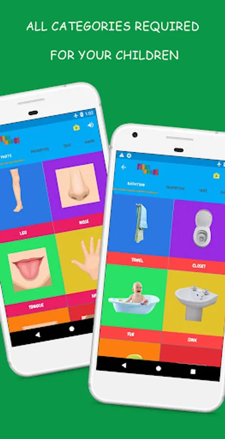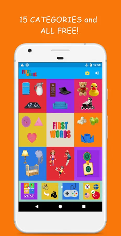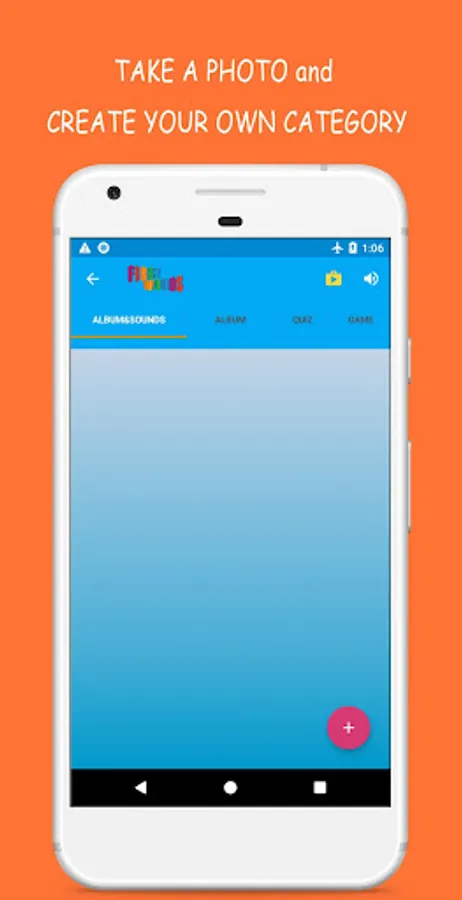 • The most attractive feature of First Words is that in addition to the ready-made categories, there is an album category in which you can take photos of the objects and the creatures you want your child to learn and create according to the level of development and environmental conditions.