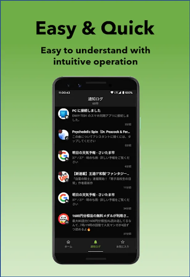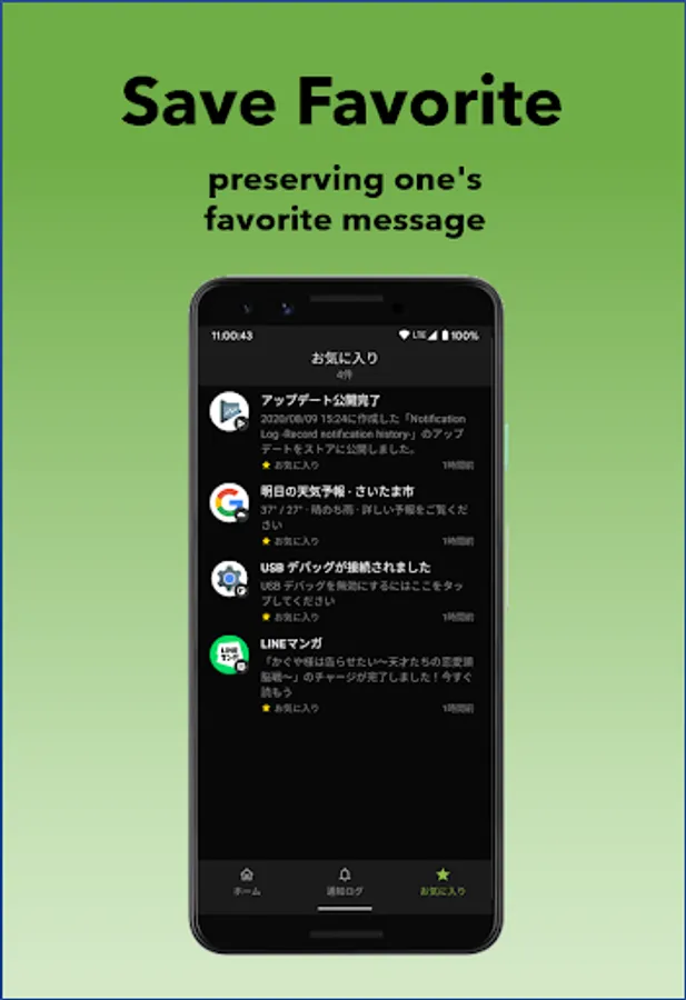 "Notification log" is an application that records notifications sent from various applications and can be confirmed later. It can also be used for avoiding the reading of apps that don't want to be read, such as finding out apps that send unwanted notifications or Twitter DM.