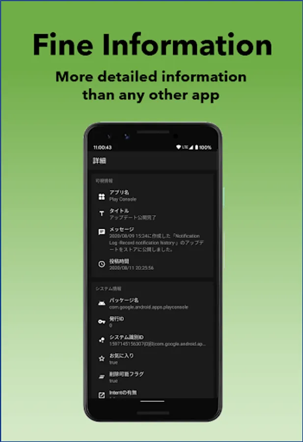 -Tap the notification to see the details of the notification. Details such as "Notification title, notification text, app icon, date and time ... etc" are displayed in an easy-to-read manner