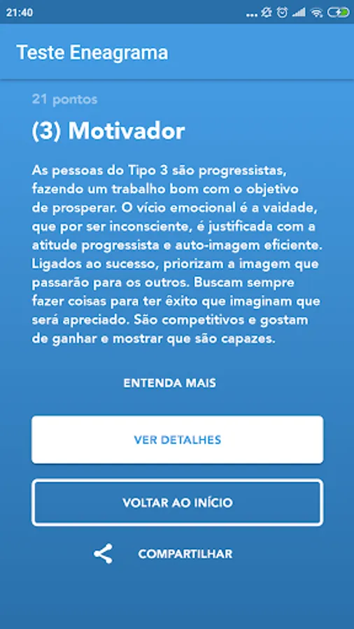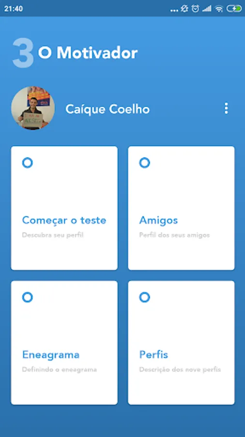 With this app you will better understand what the enneagram is, you can take your quiz and learn more about your profile. You will also be able to know the profile of your friends and family and thus know how to best relate to each other.