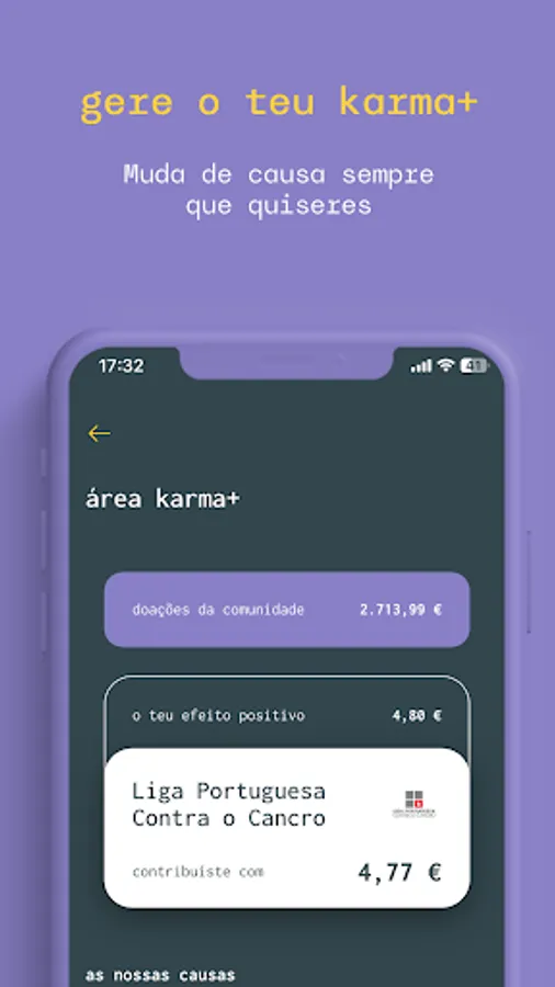 It was because of the belief that investing in society brings returns to everyone that Banco Montepio created karma+. A unique debit card in Portugal that turns € into something +. This is because whenever you use your karma+ card, part of the fees are donated to a social cause of your choice. Through this app you will be able to: