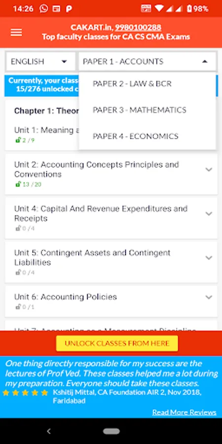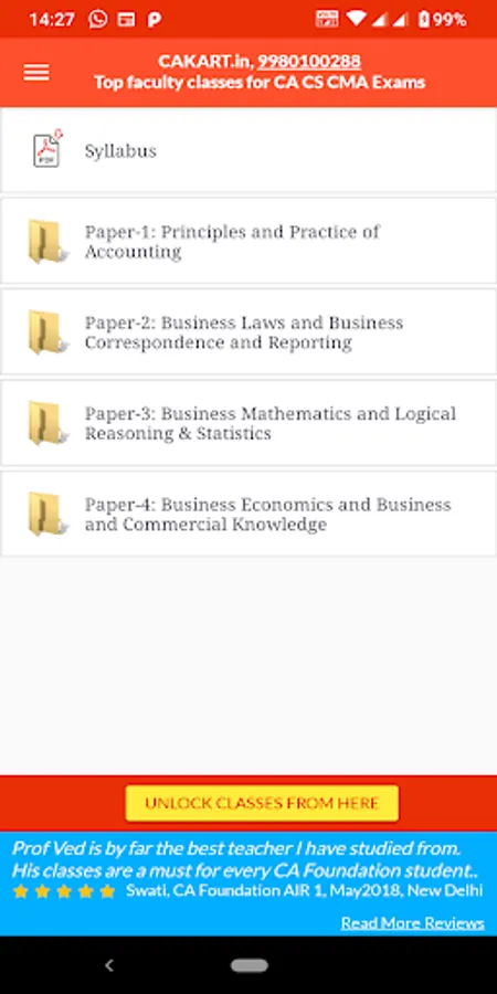 - An option to view all 500+ hours of CA foundation videos taught by a renowned Sr ICAI faculty