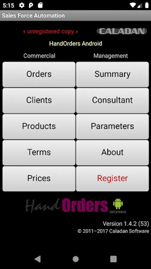 HandOrders works without limitation while it has not had a registered user's license.