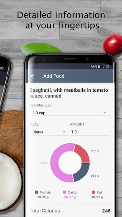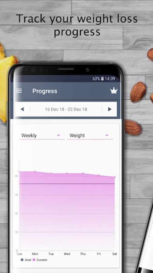 - Set customized Macronutrient goals for Protein, Carbs & Fat to help you stay on track