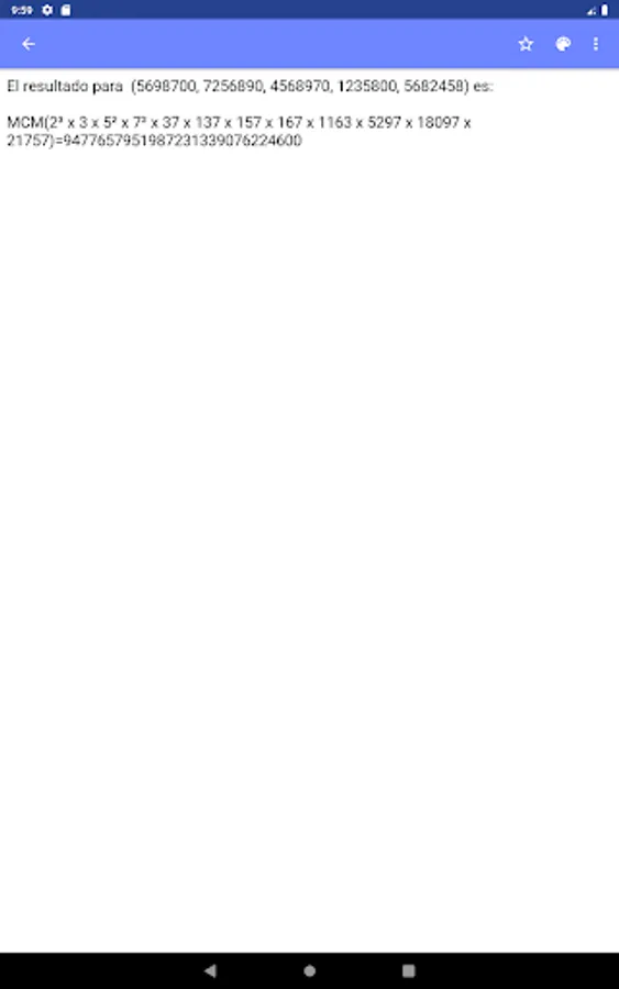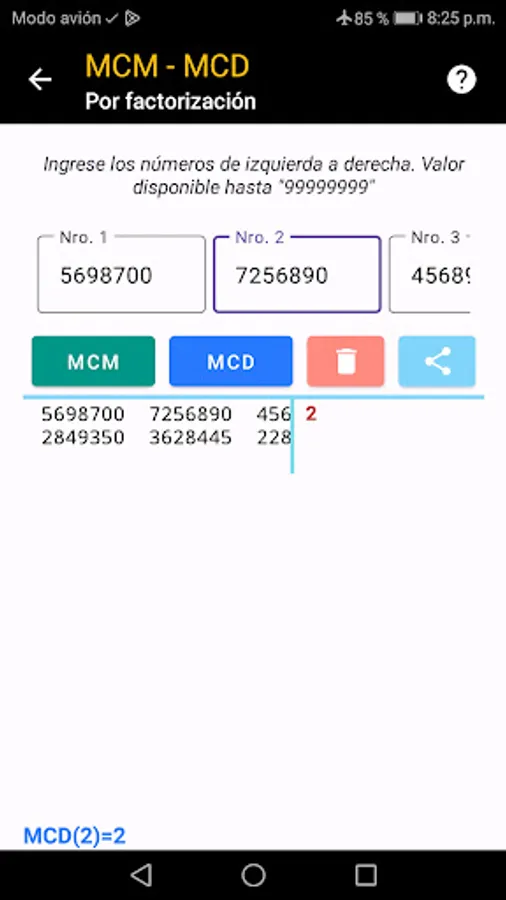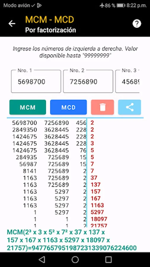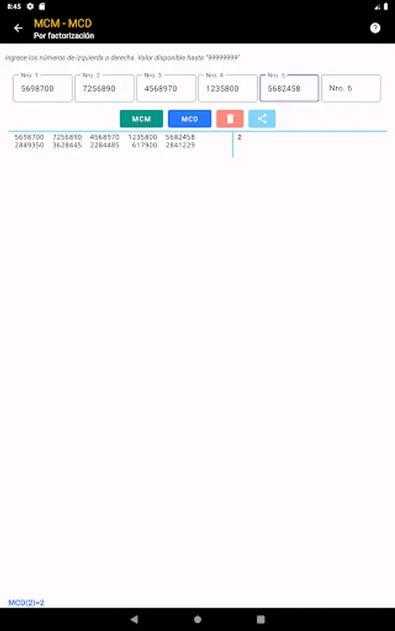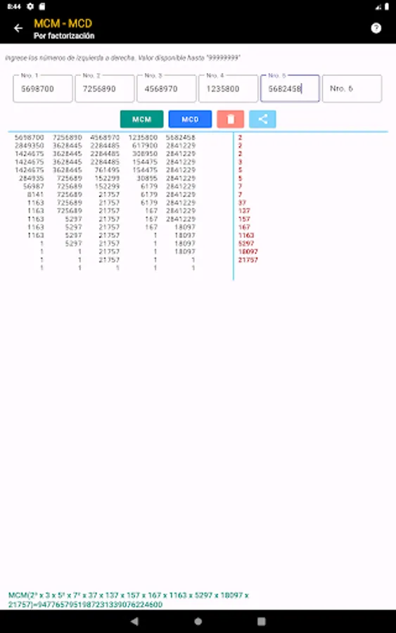 The LCM - GCD by Factoring operation allows you to calculate the LCM and GCD of up to seven numbers simultaneously, all in the blink of an eye.