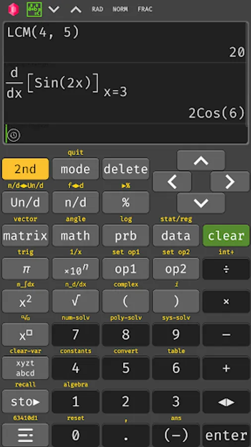 - Free scientific calculator 34 emulator: Factor integer into prime in Math menu, derivatives and integrals