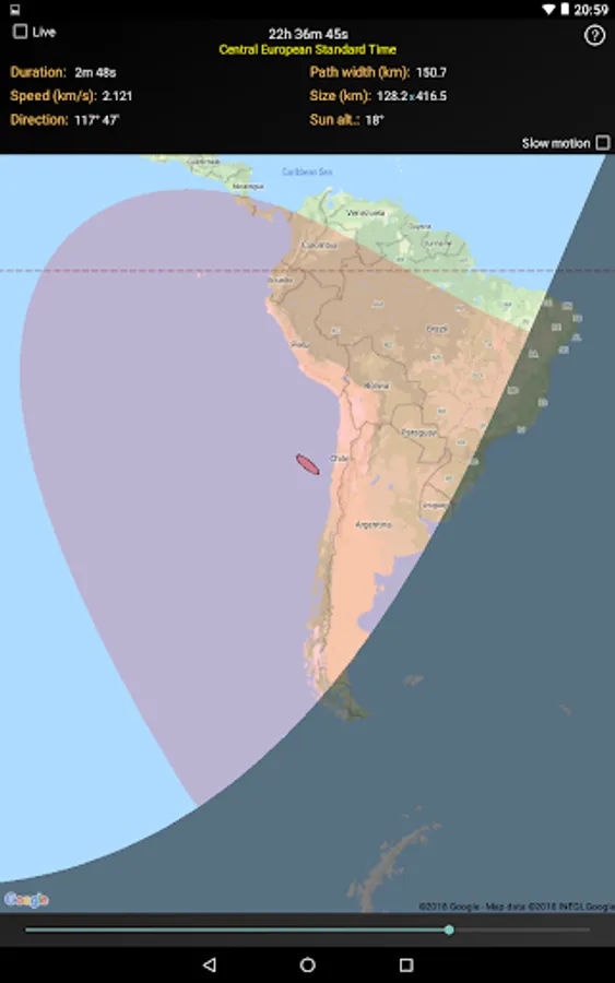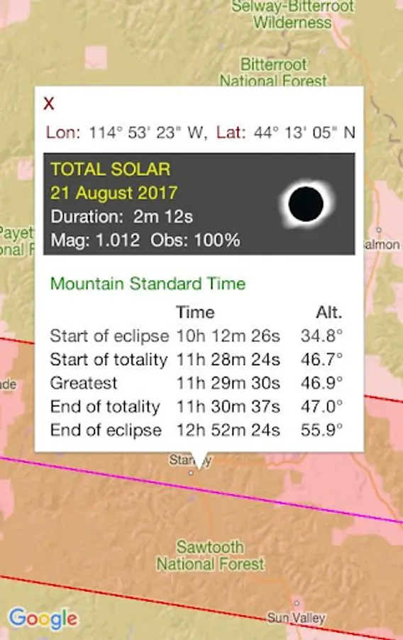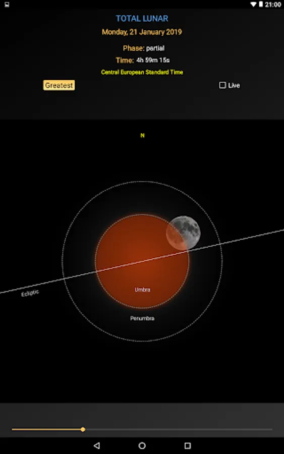 * Continous tracking of you position and update of the contact times. Useful if you observe the eclipse on board a ship.