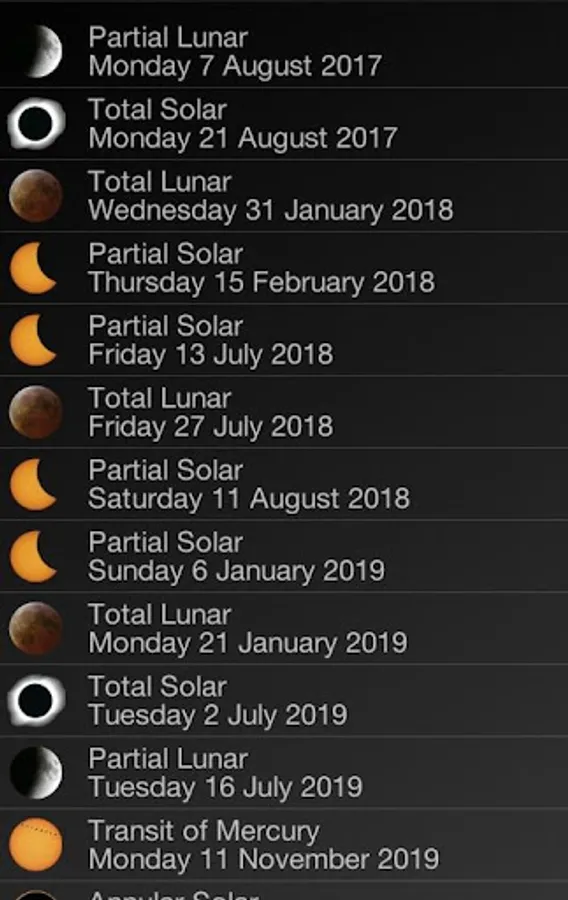 Which futur eclipses will be visible from my location? And from the antipodes? What they will be like? How long will they last? And in the past, how many eclipses have there been? All these and many other questions about both, eclipses and planetary transits, are answered with this tool. Now, all the information about these astronomical events in your mobile thanks to this application.