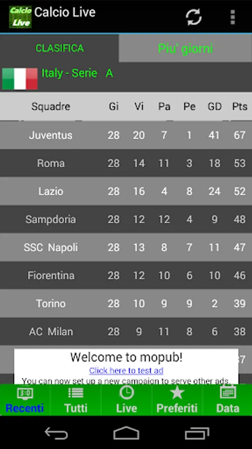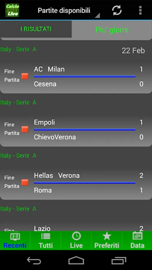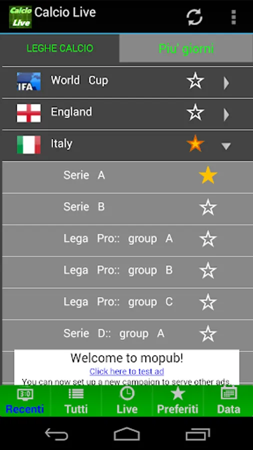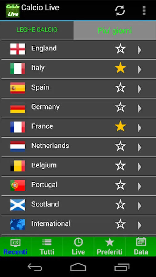 Selecting the refresh period, notification of the goals of the championship chosen even