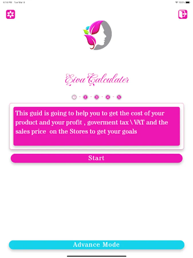 the app have 2 modes ( guid mode & advance Mode ) . and if you do not like the pink color you can change it to blue