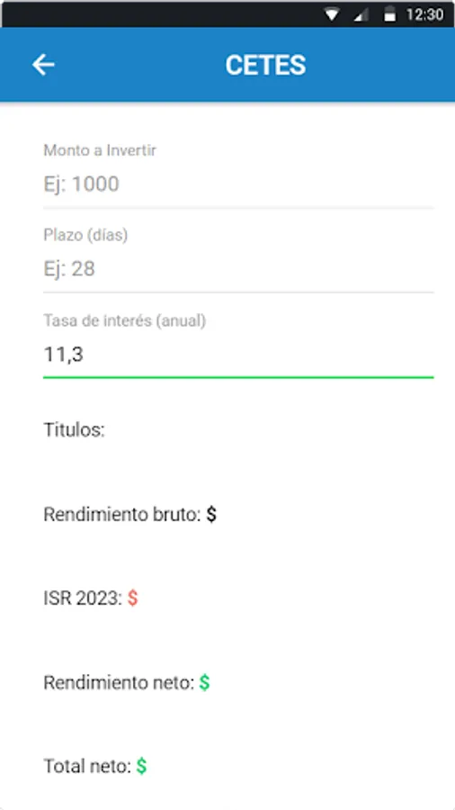 Don't waste any more time doing complicated calculations on your own. Download the Cetes Calculator now and discover how you can boost your investments in cetes, udibonos, bondes, bonds and bonddia easily, quickly and accurately. Make the most of your financial resources and take control of your financial future.