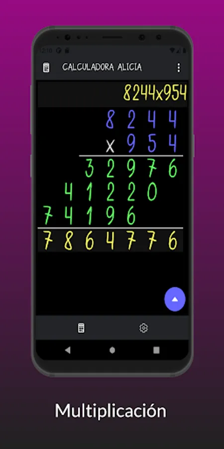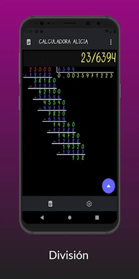 Our Alice calculator is a free application and without the need to be connected to the internet. This calculator is ideal for primary and secondary students, so that they learn to do division correctly.
