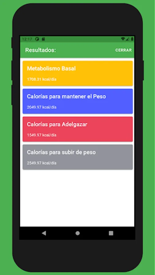 Based on the Harris-Benedict equation, the app estimates your Basal Metabolic Rate (BMR), which is the number of calories your body needs to function at rest. Then, considering your level of physical activity, calculate the total number of calories you burn each day.