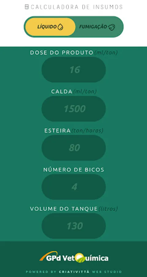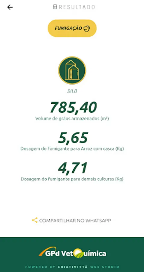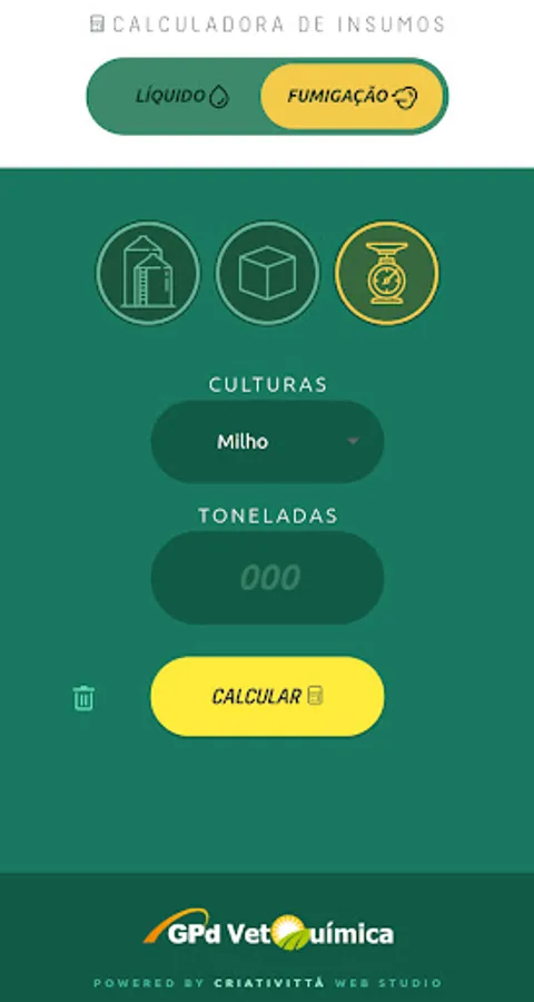 GPD VETQUÍMICA provides an input calculator for the treatment of stored grains. It facilitates product dosing both for liquid treatment and also for fumigation in silos, piles or even through the weight of grains, in crops such as soy, corn, wheat, rice, paddy rice, oats, beans, among others.