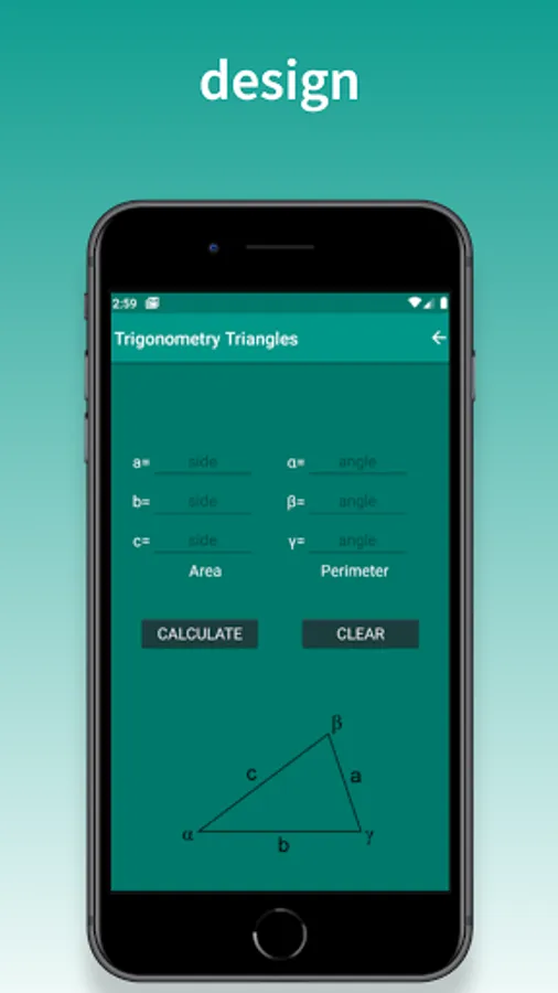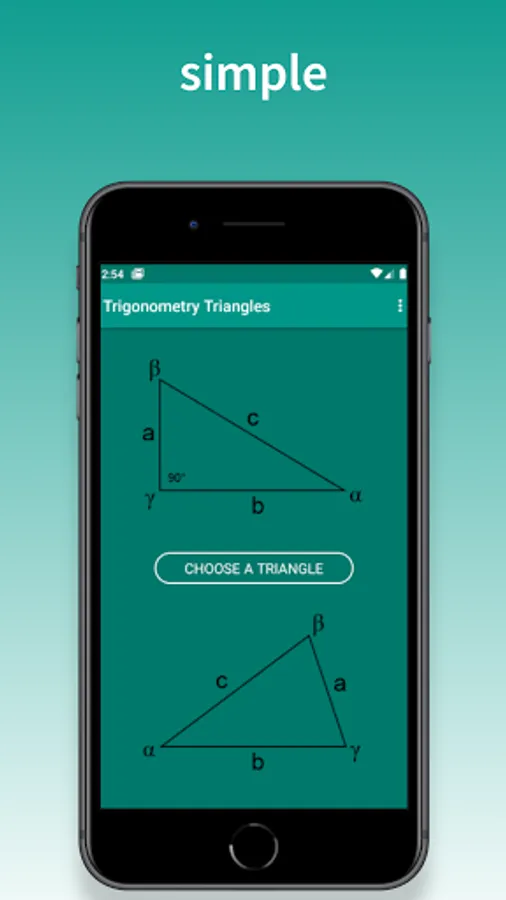 With this application you can calculate and solve triangles by entering 1 side and 2 angles, or 2 sides and 1 angle, or 3 sides. It also solves right triangles by entering 2 angles and 1 side or 1 side and 2 angles. It will also obtain the area, the perimeter, if it is rectangle or acute or obtuse and if it is equilateral or isosceles or scalene. His representative figure will also be displayed. You can see the values in degrees or radians.